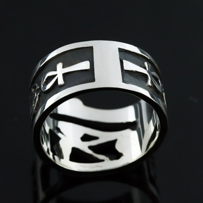 Vintage Men Women Silver Color Egyptian Eye of Horus Ankh Cross Symbolic Rings Egypt Amulet Jewelry Gift